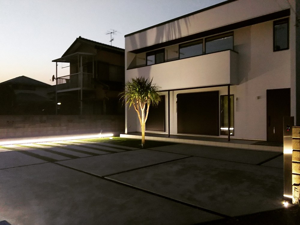 機能門柱にも埋込式ライトと3か所で照らす施工になっております。