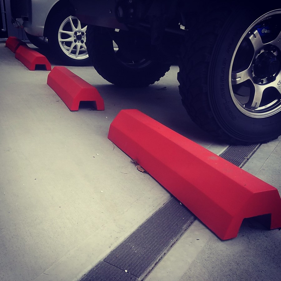 こちらの真っ赤な商品は、パーキングブロック(車止め)