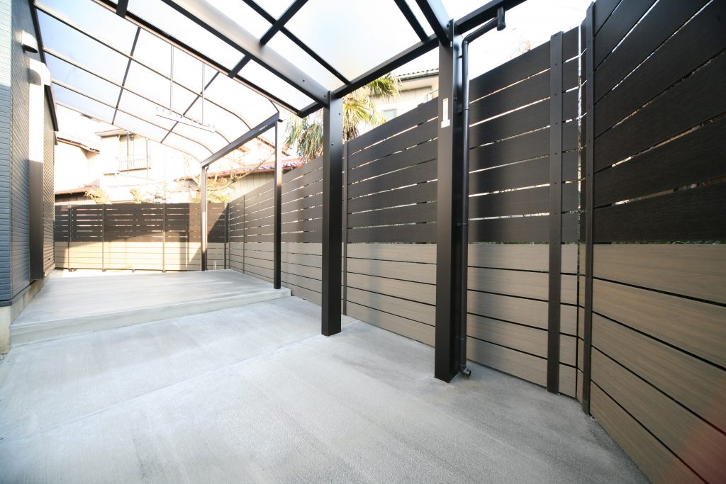 お洒落な目隠しフェンス グローベン プラドone H:2000 板材のすき間は10mmとなっており、今回はツートンカラーで作成してみました、上段には 『オークブラック』下段には 『アンティークグレー』のツートンカラー、割合は6:4としバランスが整ったかと思いますが、(あくまでも個人的な意見です)出来上がりはカッコ良い!お客様も満足して下さいました!板材は全4色とラインナップされておりますので、詳しくはホームページ内にフェンス自動見積 を掲載してありますので、クリックしてみて下さい。