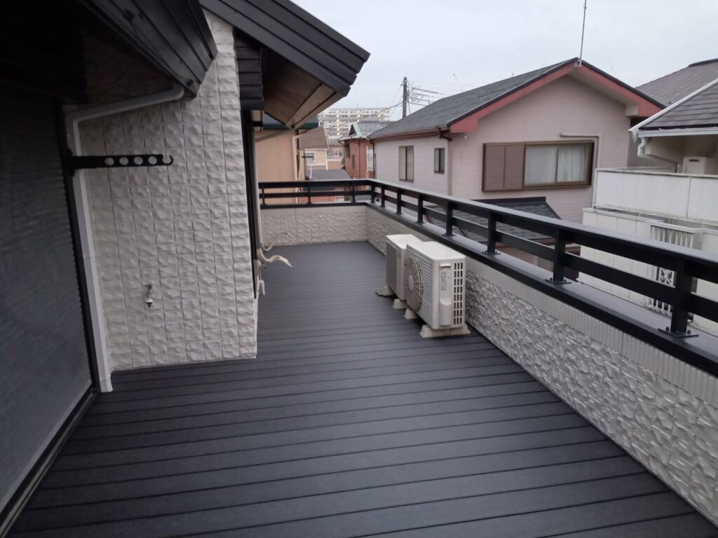 通常のバルコニーは防水を行うので、防水塗装のままが一般的となります、下履きを履かないとバルコニーには出たくない仕上がります、そこで今回ご紹介するデッキは四国化成工業 ファンデッキHG 低床タイプ 段差も少なくなり気軽にバルコニーに出ていけて、今後はBBQをするとの事です、アフタヌーンティーや夏場はハンモッグなど設置し、貴方だけの空間を楽しんでみては