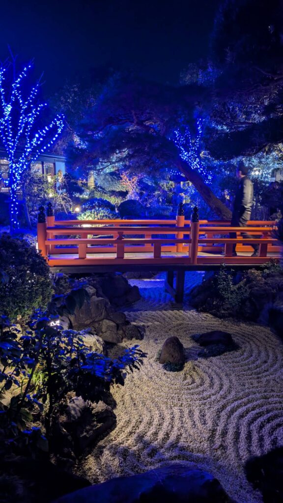 中庭は青のイルミネーションで庭園とコラボレーション空間