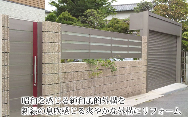 電動で開閉が可能なシャッターゲートは、どんな住宅とも調和がとれるシャープなデザインのシングルシャッターFタイプを使っており、非リフォーム箇所との見た目のバランスも考えております。