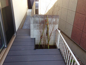 サンヨーホームズさんからのご依頼で、新築分譲住宅の外構を担当いたしました。 千葉県柏市千代田にあるスマeタウン柏の全部で3棟あるうちの1棟目のご紹介です。 一見、ピンコロ風の門壁ですが、クワトロブロックを使用しております。 植栽スペースとアプローチの境界線には門壁と同色系のピンコロを並べてコーディネイト。 デザイナーズパーツの角材を等間隔に設置しさりげなく目隠しに。 植栽は、オリーブとボックスウッドです。 洗練された存在感のある機能門柱は、LIXILのウィルモダンスリム。 スリムでコンパクトなのに高機能で、人気の高い商品です。 カースペースをご覧いただくとわかりますが、あみだくじ状の目地になっておりまして、遊び心満載です。 三協アルミの人工木ウッドデッキひとときを使用。 ぬくもりのある風合いを再現して、耐候性・耐久性にも優れ、メンテナンスが簡単なデッキです。 ウッドデッキにも植栽スペースを設け、モミジを植えております。 柏市でお家を検討されていらっしゃる方にぜひ見てもらいたい物件です。 見学会も開催しているので、詳しく知りたい方は、お気軽にメールかお電話でお問い合わせください。