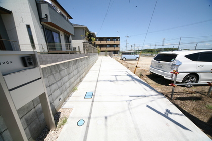 玄関までが長く駐車場にもなっており、車は4台まで置けるスペースです