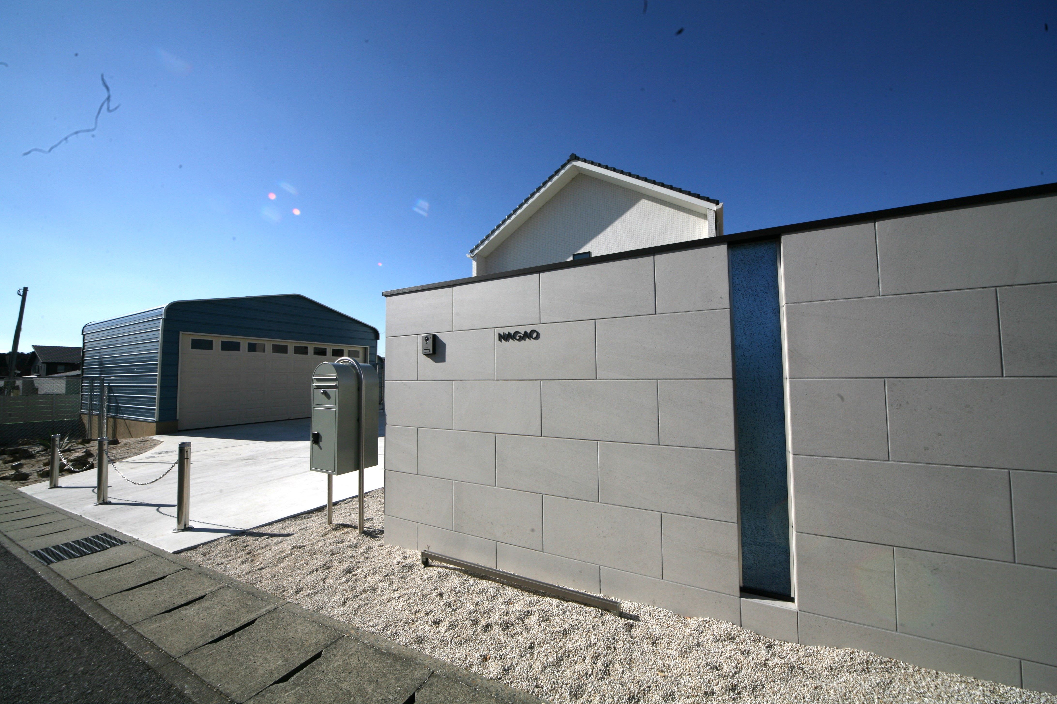 広々とした敷地にお車を主役にしたエクステリアプラン、ガレージやオープンスタイルをセミクローズタイプにし植栽を植え込んでリゾートタイプに作り上げてまいりますので乞うご期待、門周りはオリジナルタイル『ノルディックストーン300×600』とスリット部分にはガラス『ティンクル2』を取付、アプローチ照明は一条の光1200を3か所に配置してあります。スポットライトを植栽に照らし建物全体的に影が映し出されるように配置してあり演出をしてくれております。エクステリアにはやはり植栽と照明は欠かせないアイテムとなっておます、ここで主役の登場『カリフィルニアガレージ』弊社のオリジナルガレージとなっております、お車2台用のサイズ感となっており中も広々とした空間が保たれております、シャッターは電動式のオーバーハングドア!アメリカンですね