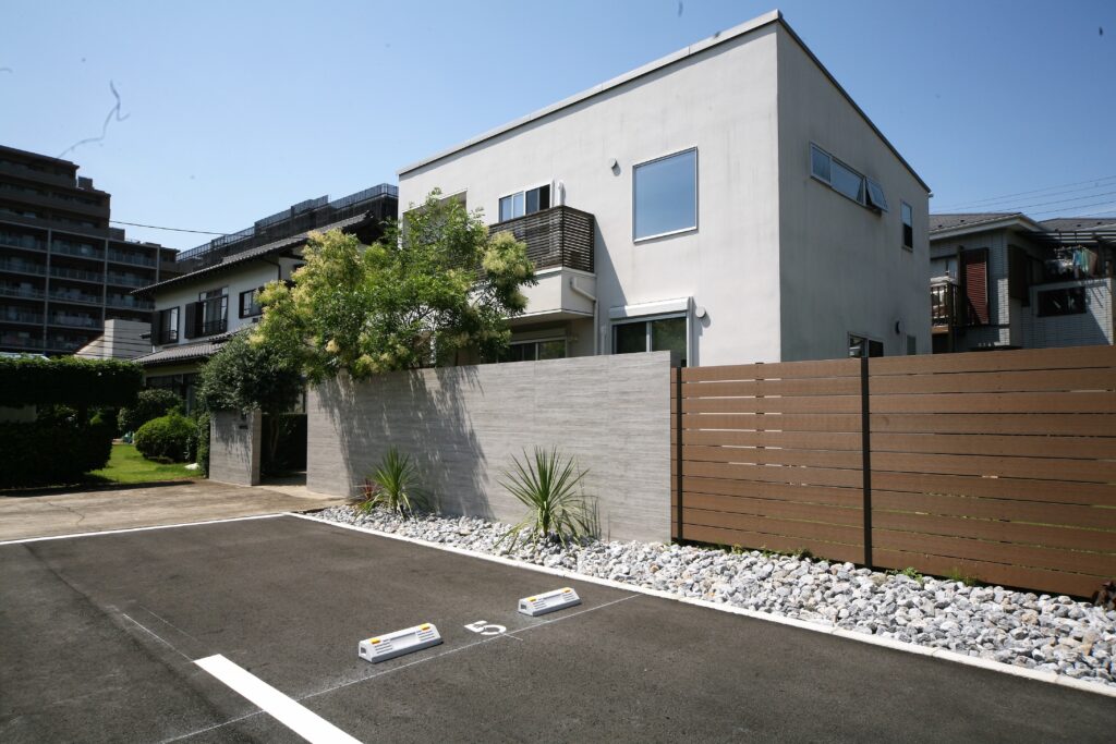 以前に弊社にて施工させて頂いたオーナー様より、新しくカッコ良くメンテナンスを楽にした外観を計画して欲しいとの事から設計させて頂きました、当時、門袖をRC擁壁で作成しておりましたので今回は上からタイルを張らせて頂きました、足元に緑があったり今流行りのロックガーデンで立体感が出来る事や美観を考えご提案させて頂きました、植栽はニューサイランになります、当時何もなかった場所には目線も考慮しグローベン プラドワンにてお庭と貸駐車場の間に目隠しフェンスもご提案させて頂き採用して下さいました。