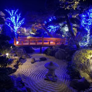 紅葉をライトアップにチェンジしオーガニックボールとアイスライトでお出迎え