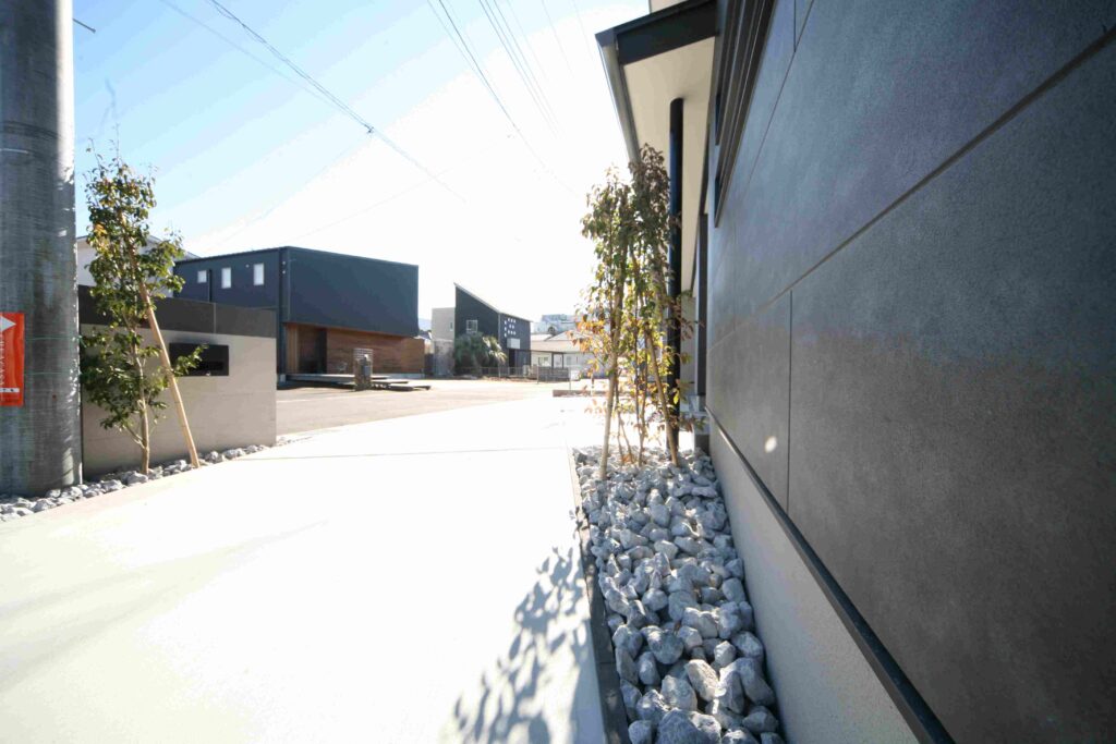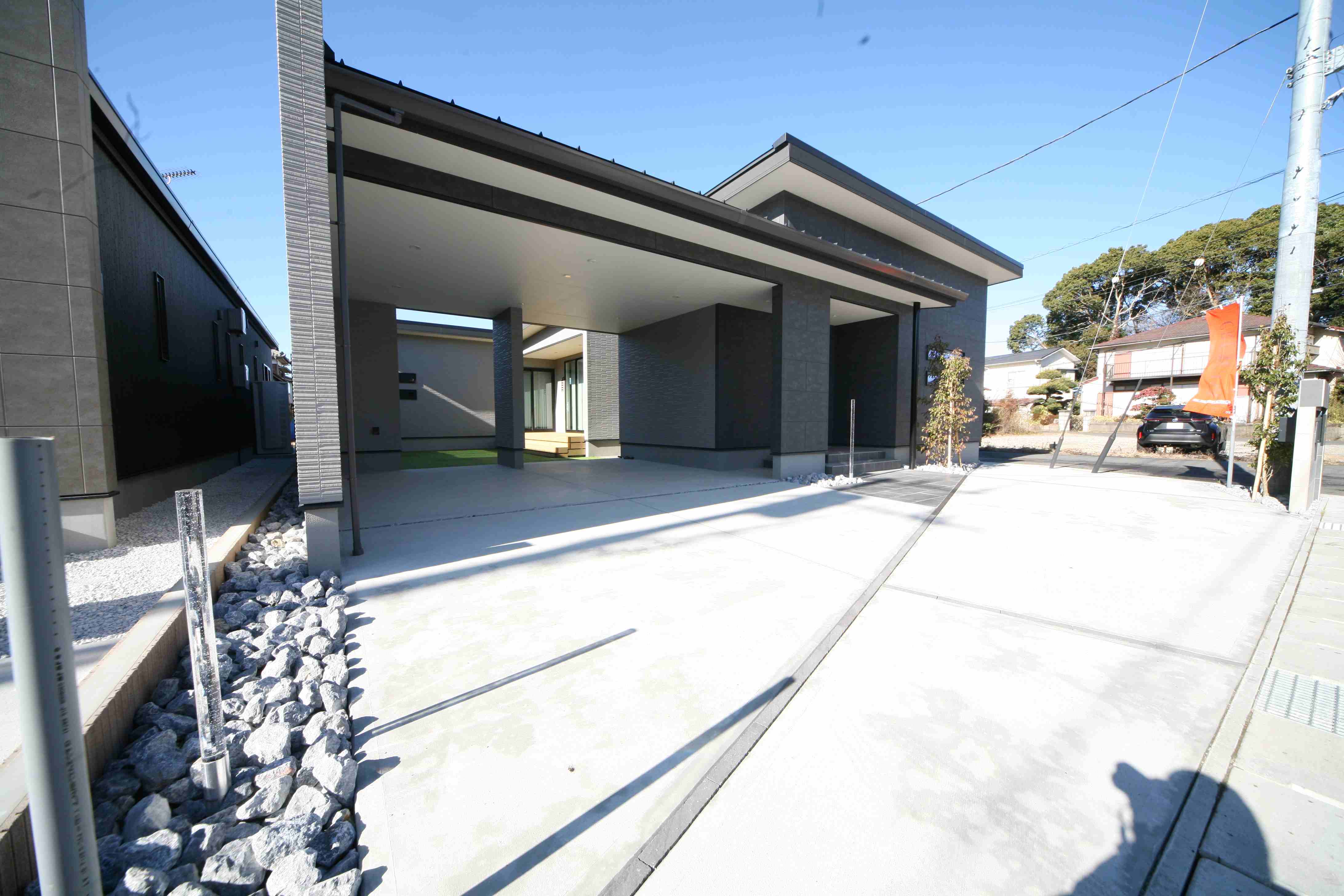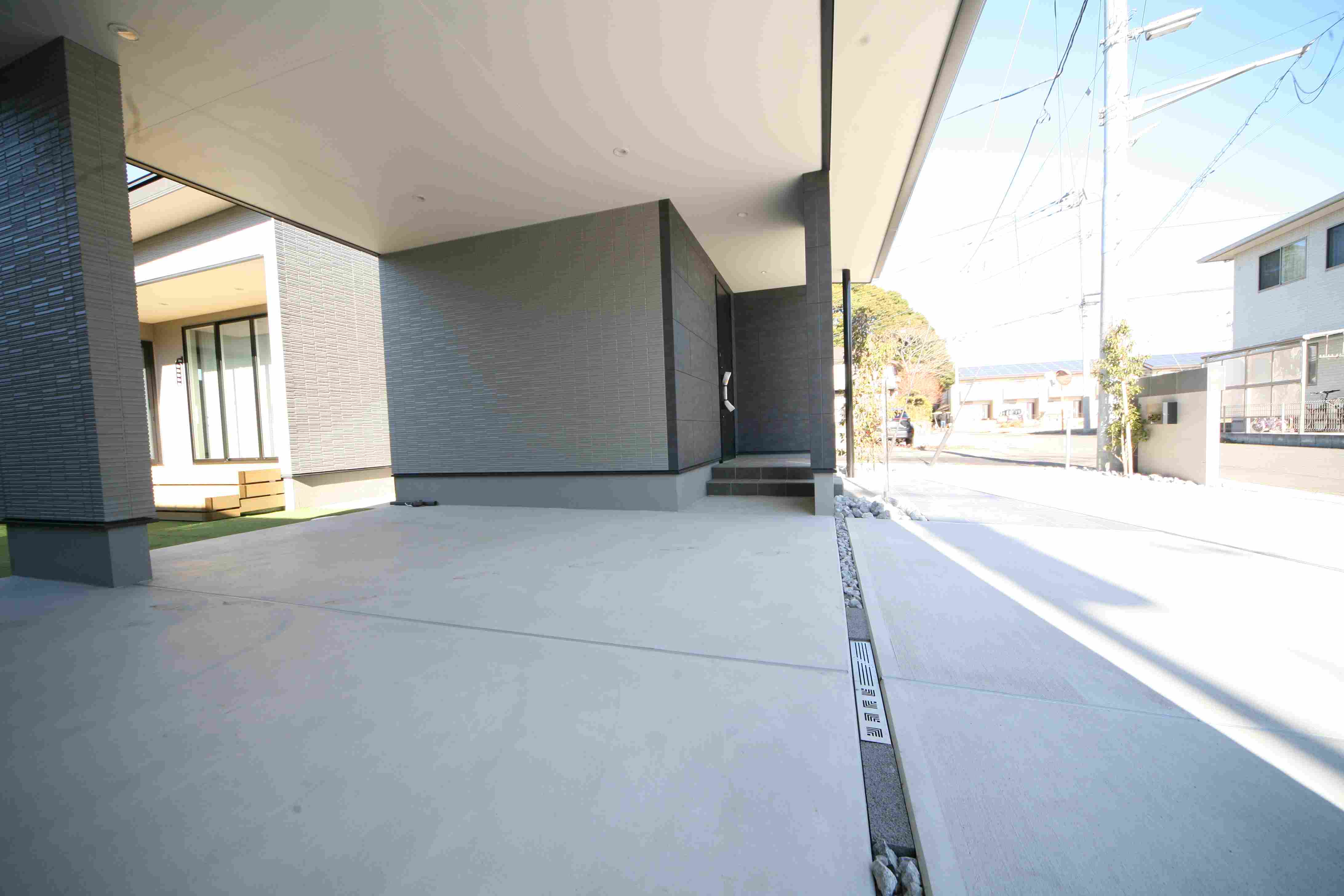 今回の施工例は、茂原市にあるクレアカーサ様の工事となりオープンなシンプルモダンスタイル作りとなっております、建物のカラーやデザインに合わせたスタイリッシュな外構、オリジナル商材を取入れて頂きオリジナルな外構が出来上がりました、中庭も広々としており駐車スペースも広く4台は駐車できる外構となっておりますので、来客者の事も考えたプランとなっております